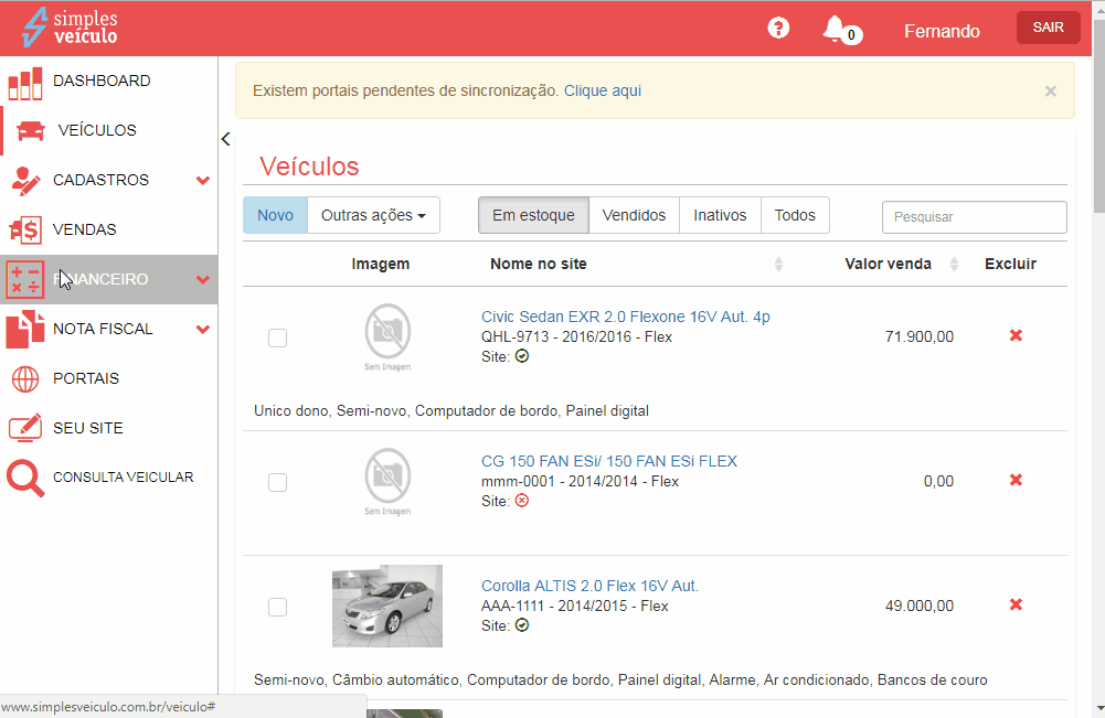 Envie e remova seus veículos dos portais de vendas de maneira simples e rápida. Com apenas alguns cliques seus veículos estarão em diversos portais.